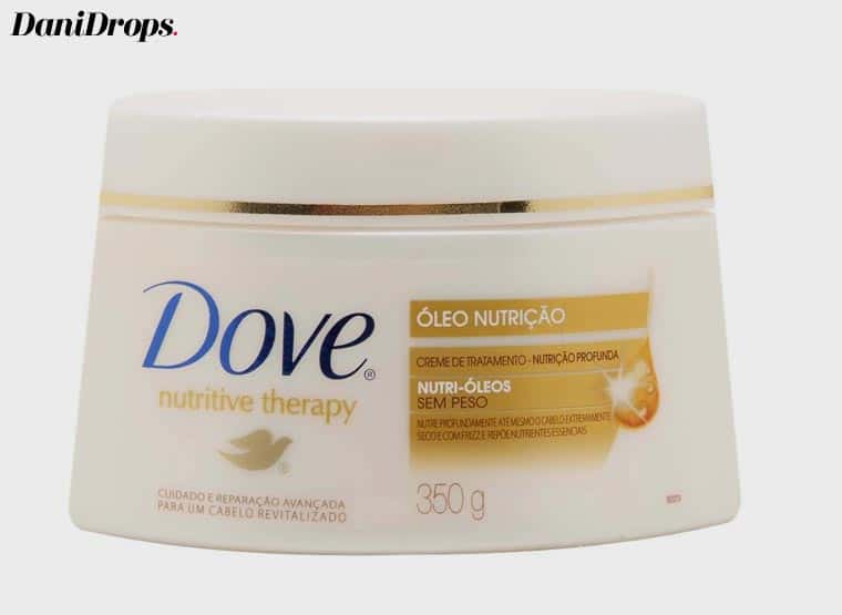 O creme de tratamento Dove é composto por de óleos naturais e finos como óleo de argan, óleo de amêndoas e óleo de coco.